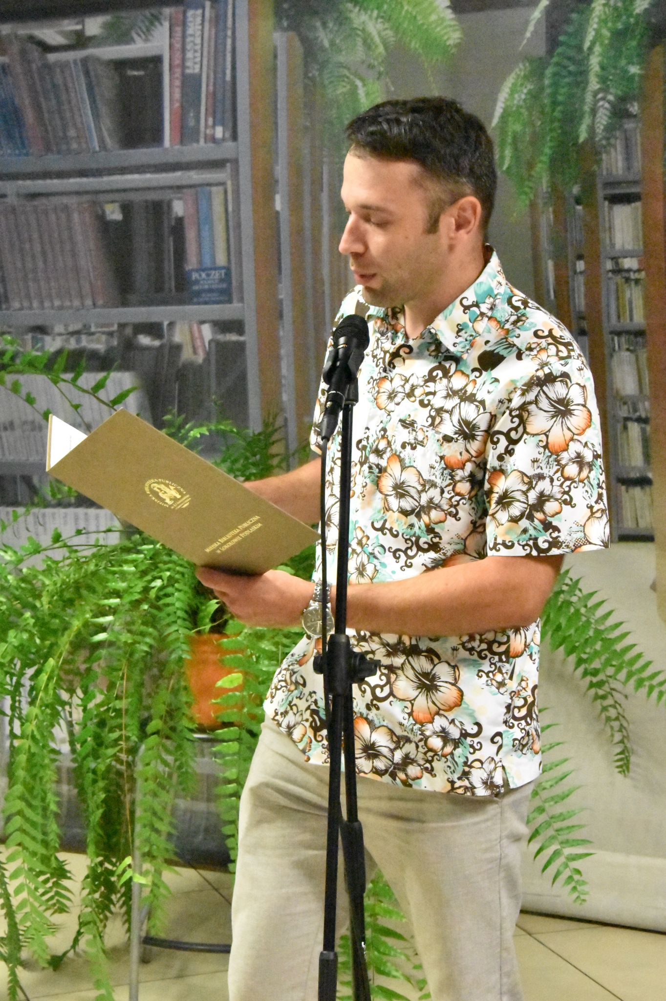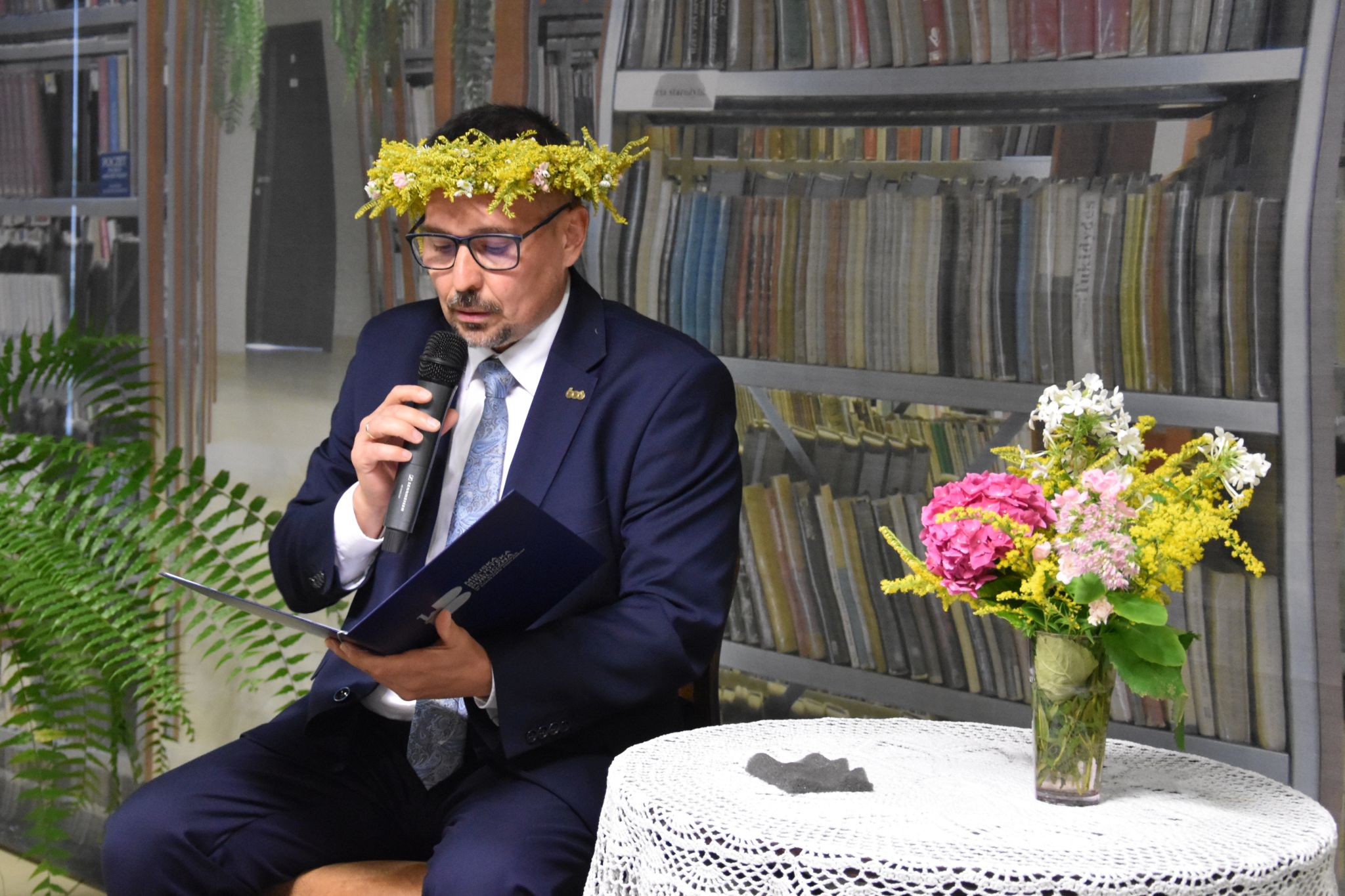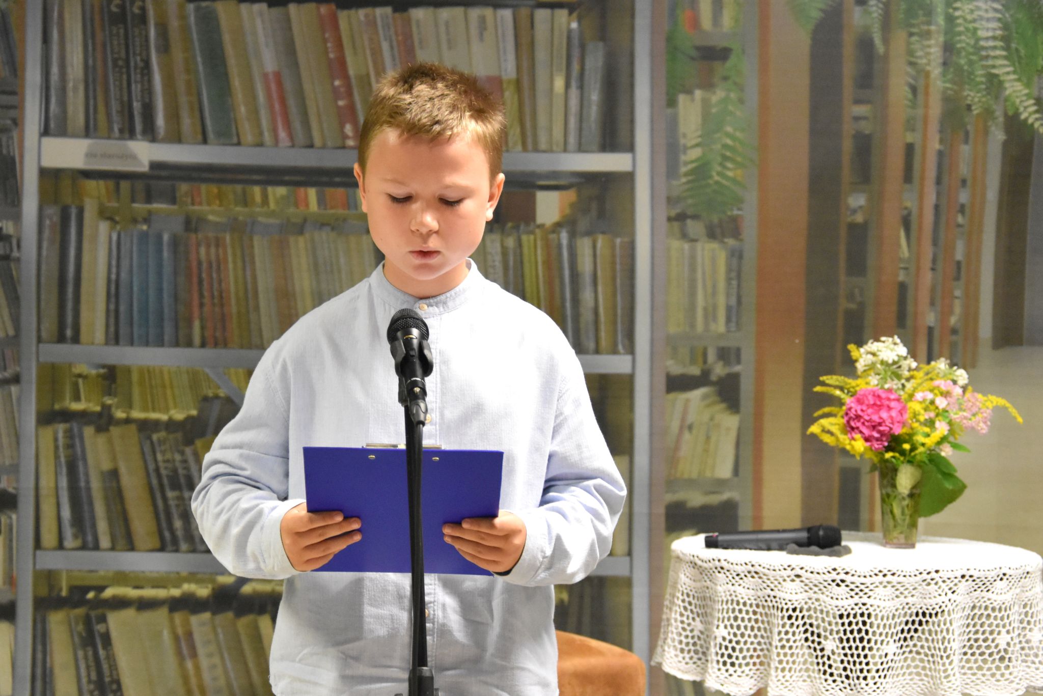 Dzieci i Młodzież z Bibliotecznej Grupy Teatralnej „Wiraż” – Franciszek Kryszczuk (narrator), Agata Kwapisz, Oliwia Flakowska, Wiktoria Pomarańska przeczytali fragmenty „Pieśni Świętojańskiej o Sobótce. Po występie dziewczęta ofiarowały wianki wybranym mężczyznom.