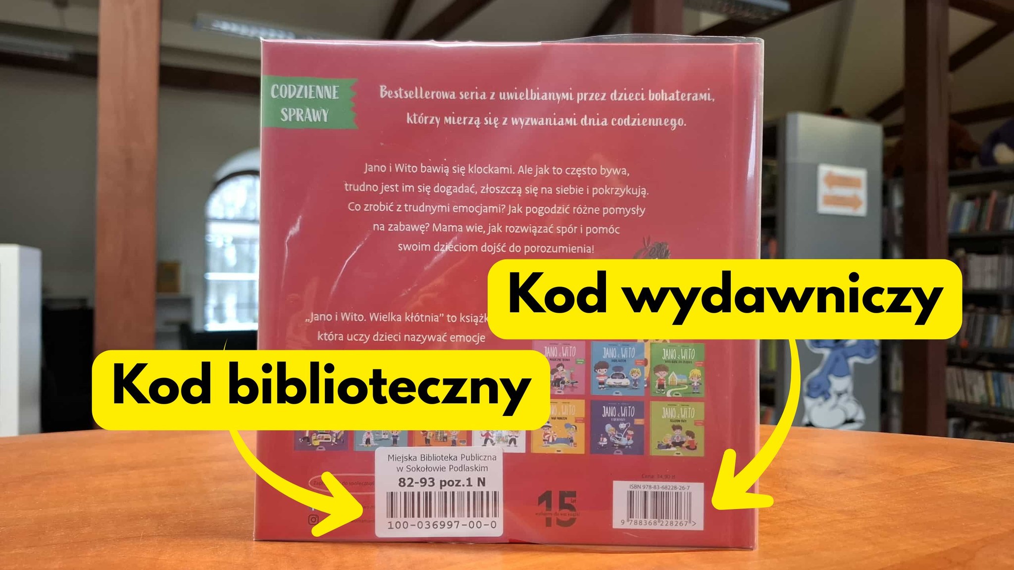 Następnie skanujemy biblioteczny kod kreskowy książki tym samym czytnikiem kodów kreskowych. Uwaga! Nie skanujemy kodów wydawniczych, które znajdują się na ostatniej stronie okładki.