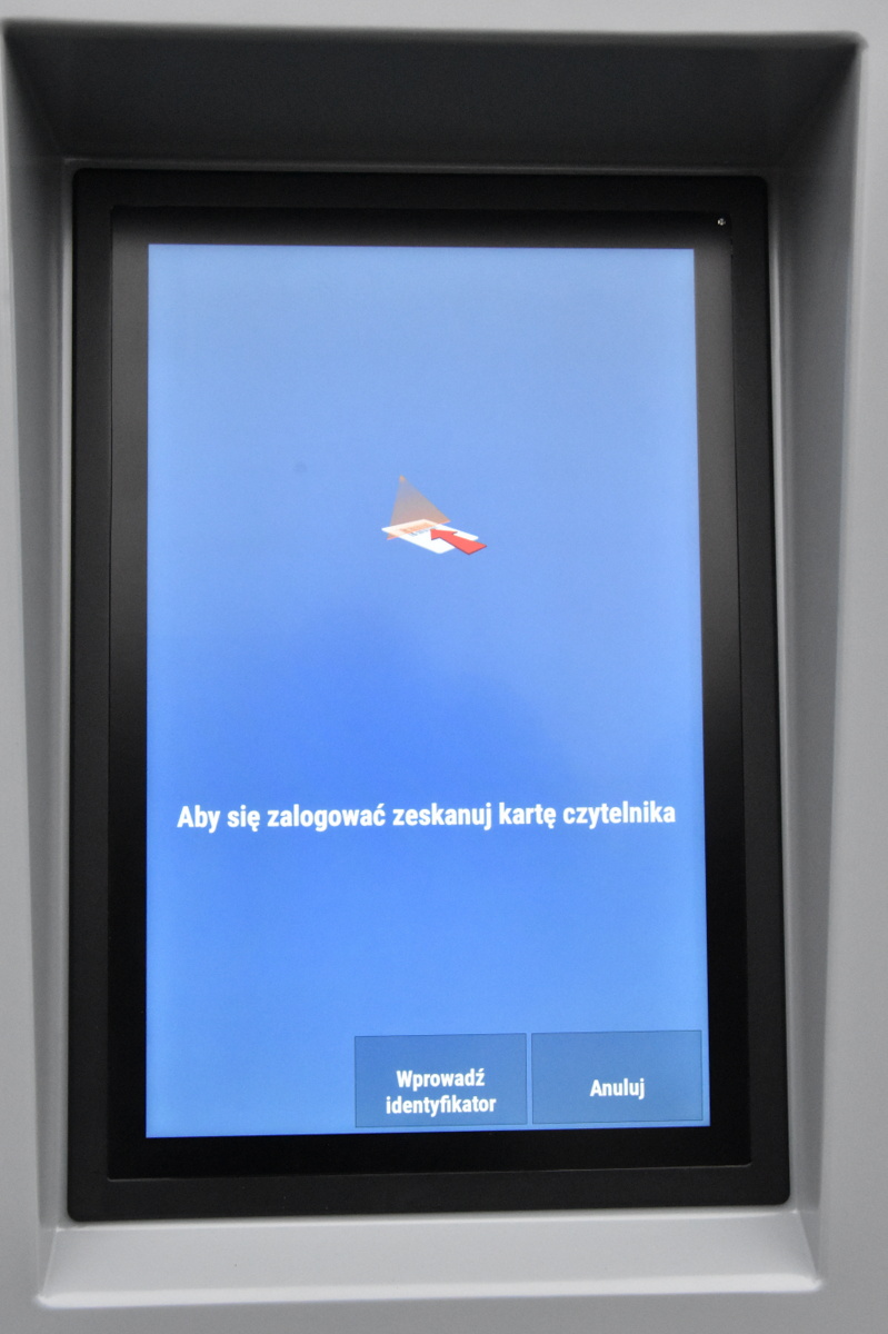 Aby dokonać odbioru zamówień / rezerwacji należy na dotykowym ekranie wybrać opcję ODBIERZ ZAMÓWIONE. Następnie zbliżyć kartę biblioteczną do czytnika kodów kreskowych. Otworzy się skrytka, w której znajdują się zbiory. Po wyjęciu wszystkich pozycji należy zamknąć skrytkę i na ekranie dotykowym powrócić do głównego menu.