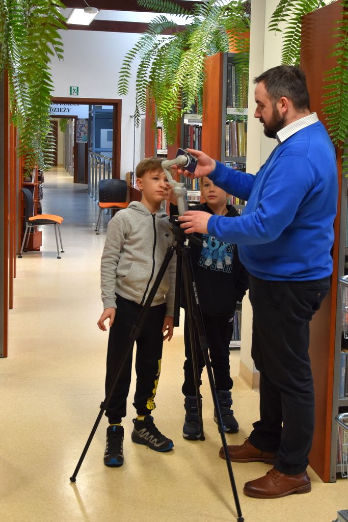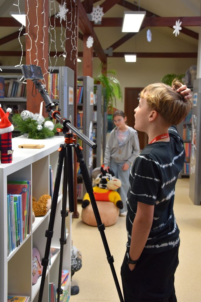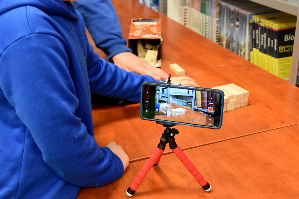 Uczestnicy uczyli się tworzyć filmy poprzez fotografowanie sekwencyjnie poruszanych obiektów. Dzieci wykorzystały do tego zbiory biblioteczne:
